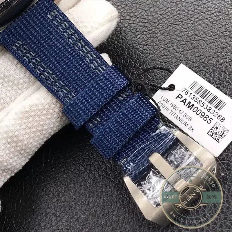 The PAM00985 represents Panerai’s commitment to sustainable luxury with its groundbreaking EcoTitanium construction. This 47mm professional dive watch combines recycled titanium materials with the brand’s signature military-inspired aesthetics.