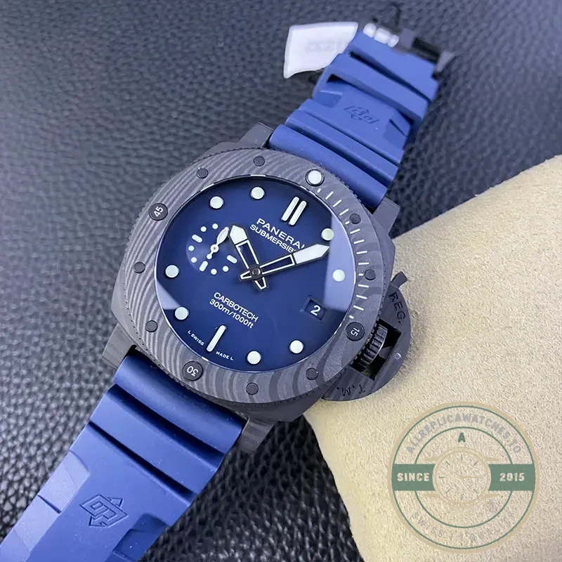 A: This superclone replicates the authentic Carbotech construction, blue dial coloring, and P.9010 movement architecture. Case dimensions and crown guard geometry match the original specifications precisely.