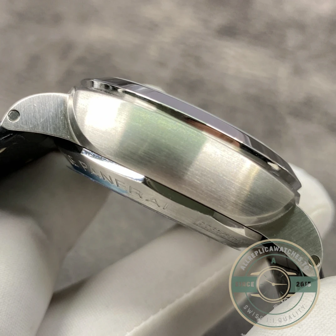 The watch features a high-contrast dial with strong lume readability and a balanced layout inspired by Panerai classics. A Swiss clone automatic caliber powers the watch with a smooth seconds sweep and decorated plates, mirroring the original movement layout. Tested for water resistance up to 50 meters and protected by a scratch-resistant sapphire crystal, this Swiss replica is made for daily wear with true superclone realism.